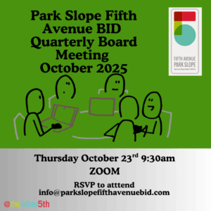 Please RSVP info@parkslopefifthavenuebid.com to receive the ZOOM link.