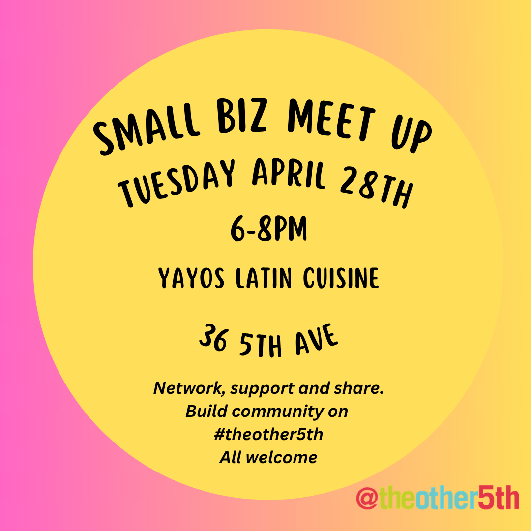 All are welcome to our April Small Business Meet up on 5th Ave.